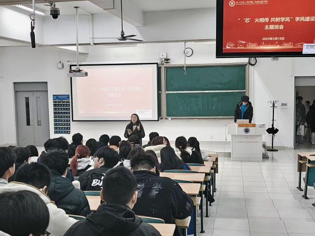为深入贯彻落实立德树人根本任务,扎实推进优良学风建设,营造积极向上的学习氛围,3月20至25日,电子信息工程学院/集成电路学院组织非毕业班召开“‘芯’火相传 共树学风”学风建设主题班会。班会以班级为单位,通过专题学习、倡议宣读、经验交流等形式,引导学生厚植专业理想,以“芯”火之力共筑学风建设新生态。