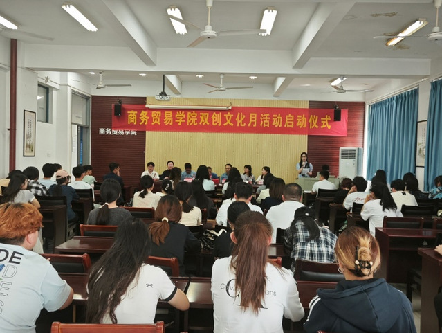 5月7日下午,商务贸易学院双创文化月正式启动。学院党委书记邢益军、院长阮晓文、副书记王静、副院长周玮,南京泽鸣电子商务有限公司总经理高云峰、南京鸿鑫出海电子商务有限公司总经理李钊瑾、连云港创写文化传媒有限公司负责人出席此次活动,与学院师生齐聚一堂,共同见证双创实践、校企合作重要时刻,共话创新发展新蓝图。