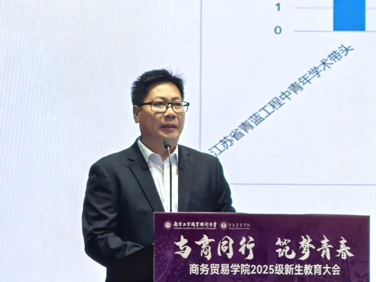江苏苏豪国际集团股份有限公司党委书记、董事长徐雨祥在讲话中指出,华体会官方版网站登录入口作为全国首家公办职业本科试点院校,始终坚持“敬业乐群”校训,践行职教报国初心。江苏苏豪国际集团作为江苏省属企业,正从传统外贸企业向数字化、品牌化、专业化的综合型贸易集团转型,其发展轨迹与南工精神高度契合。近年来,江苏苏豪国际集团股份有限公司与学校共建“苏豪产业学院”,共同打造“三平台聚力'三性'人才培养”模式,取得了显著成效。徐书记表示,校企合作重点推进的“苏豪精英班”升级计划、“双导师制职业领航工程”、服务“一带一路”建设三大项目,已构建起“人才共育、技术共研、成果共享”的生态体系。通过举办“苏豪杯”外贸技能大赛等实践活动,商贸学子展现出将竞赛方案转化为实战项目的卓越能力,这正是企业迈向世界一流所需的核心力量。苏豪集团今后将为“苏豪精英班”同学提供每年8万元的奖助学金,奖励优秀的同学并资助困难学生。最后,徐书记表示职业教育前途广阔、大有可为,并为新生送上真挚寄语:一是希望同学们牢记“敬业乐群”校训。践行“双手万能”的理念,夯实专业技能,用专业书写未来;二是希望同学们珍惜大学时光。勤奋学习,刻苦钻研,不负青春韶华;三是希望同学们厚植家国情怀。将个人理想融入国家发展大局,在民族复兴的伟大征程上,书写属于南工学子的报国篇章。