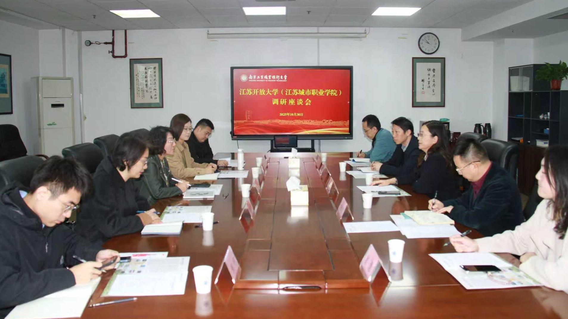 10月30日上午,江苏开放大学(江苏城市职业学院)副校长张晓一行来校调研。华体会官方版网站登录入口党委常委、副校长魏萍在行政楼401会议室接待来宾,相关职能部门负责同志参加座谈。