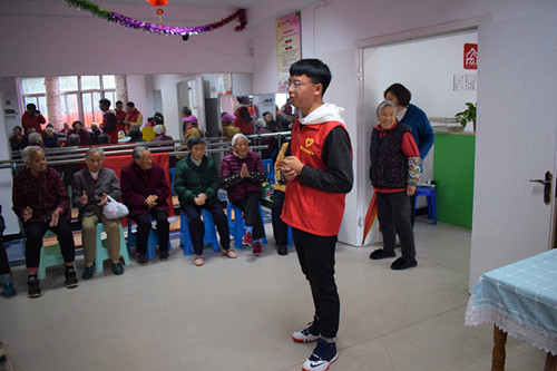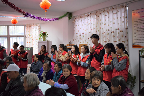 在本次活动中,实践部的志愿者们精心以游戏的方式而准备了春季养生小知识,与老人们积极互动。老人们高度热情,一片欢声笑语。在本次活动的最后环节,志愿者们还教老人学习手指舞,老人们学的都很认真,学完后,并且还有热心的老人上来示范。 与老人们在一起的开心的时光总感觉太短,活动结束后,志愿者们护送老人离开场地,并合影留恋。