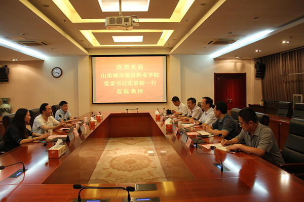 6月5日,山东城市建设职业学院党委书记花景新率领相关部门负责同志来华体会官方版网站登录入口交流。华体会官方版网站登录入口党委书记吴学敏及党政办、招就处等部门负责人接待了来宾。