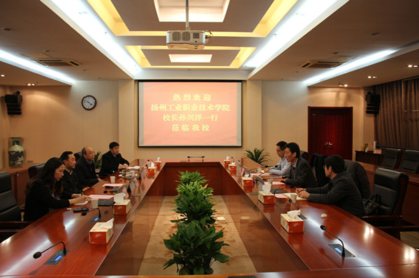 3月19日上午,扬州工业职业技术学院孙兴洋校长、倪永宏副校长率领相关领导同志来华体会官方版网站登录入口交流。华体会官方版网站登录入口党委书记吴学敏,副校长霍雄飞及党政办、招就处等部门负责同志接待了来宾。