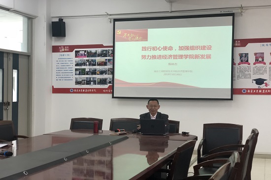 11月6日下午,在乐业楼302,经济管理学院党总支书记陈林杰以“践行初心使命 加强组织建设 努力推进经济管理学院新发展”为主题给党员们上了一堂精彩生动的党课。学校党委委员、副校长朱建国,经济管理学院三个师生党支部共40多名党员教师参加了此次党课。