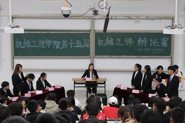 唇枪舌战,辩赛场硝烟;口若悬河,理是非曲直。为了提升学生逻辑思维能力,丰富课外生活,11月10日晚18:30,机械工程学院团总支学生会在乐群楼J1303教室举行了第十五届“机械之锋”辩论表演赛。比赛邀请了梅皓天老师,第十四届“机械之锋”辩论赛最佳辩手杨越同学、张悦同学、王昊同学担任评委。
