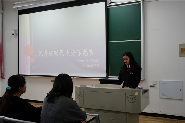 随后,洪淑均为2020级新生班助梳理了军训、迎新以及日常工作内容,明确了工作职责。着重强调班主任助理工作的重要性,新生工作任务繁重、复杂,需要每一位班主任助理付出双倍的耐心和心细,特别对班级中的“特殊”群体同学加以关心和帮助。她还强调榜样的力量,号召各位班主任助理应树立正确的政治意识,坚定立场,明辨是非,以身作则,严禁任何形式的推销行为,严格遵守班主任助理考核条例。其次,她还鼓励新任班主任助理踏踏实实将本职工作做好,充分发挥好“榜样、纽带、服务、桥梁”的作用。最后,产艺1911班助李花同学代表2019级班助发言,她向2020级新生班助讲述了自己的工作心得,向同学们分享了班助工作中的注意事项以及提高工作效率的经验。鼓励班助们多与班主任和辅导员沟通,帮助新生更快地融入大学生活。