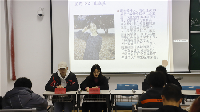 分享会上,艺术设计学院2019届学生会主席,室内1821班张晓燕同学亲切温暖地向同学们讲述了她在艺术设计学院的成长心路历程,尽管有过迷茫的瓶颈期,但最后她不仅坚持下来了,而且走得更远更好,她将这段历程总结为“拼搏,向前走”。2019届团总支副书记,视觉1811班丁健同学与大家分享了他参军入伍的报国经历,参军入伍在丁健心中不但是一件光荣的事情,更是受益终身的宝贵经验,他鼓励同学们把握青春年华,立志为国奉献。2019届团总支副书记,产艺1811班李花同学用她铿锵有力的讲述,在同学们心中刻下了不虚度年华,不浑噩青春的信念,她告诉大家,只要努力学习勇于奉献,一定能成就更好的自己。坚持、改变、选择、谦虚,2019届团总支组织部负责人,室内1811班长吕宇杰同学用诙谐幽默的语言分享了他从高中时一个默默无闻的小透明成长为如今能够独当一面的优秀学生干部所经历的故事。此外,作为校五四红旗团支部、校先进班级室内1811班的负责人,他还与在场的班长团支书们分享了班级管理经验,鼓励他们珍惜来之不易的锻炼机会,努力提高自己,与班级同学共同成长。