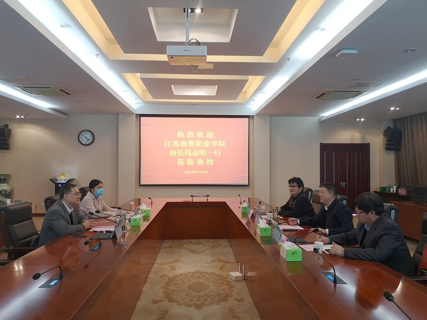 4月8日上午,江苏商贸职业学院校长冯志明一行来华体会官方版网站登录入口考察调研。党委常委、副校长潘旭海,以及教务处负责同志在行政楼辅楼一楼会议室接待了来宾。