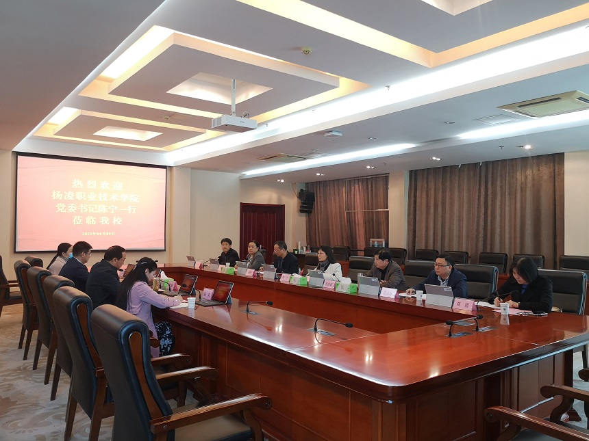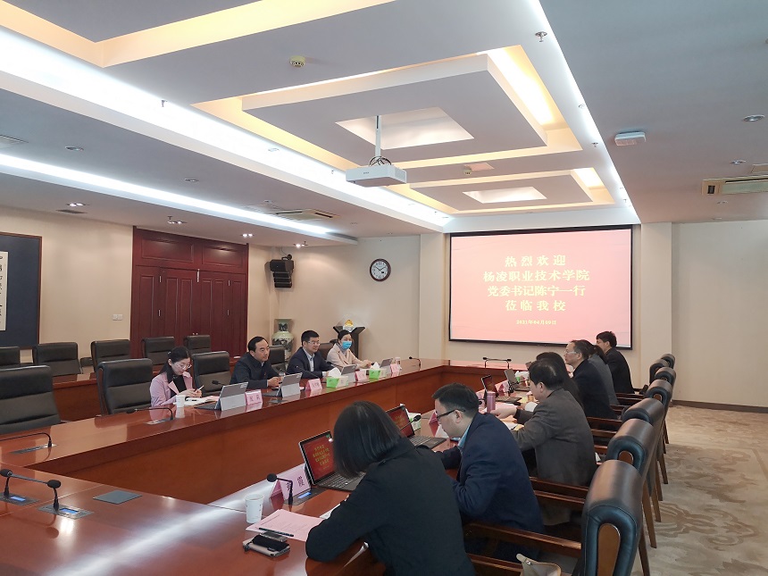 4月9日上午,杨凌职业技术学院党委书记陈宁一行来华体会官方版网站登录入口考察调研。党委书记吴学敏、党委副书记王伟,以及人事处、教务处等部门负责同志在行政楼辅楼一楼会议室接待了来宾。