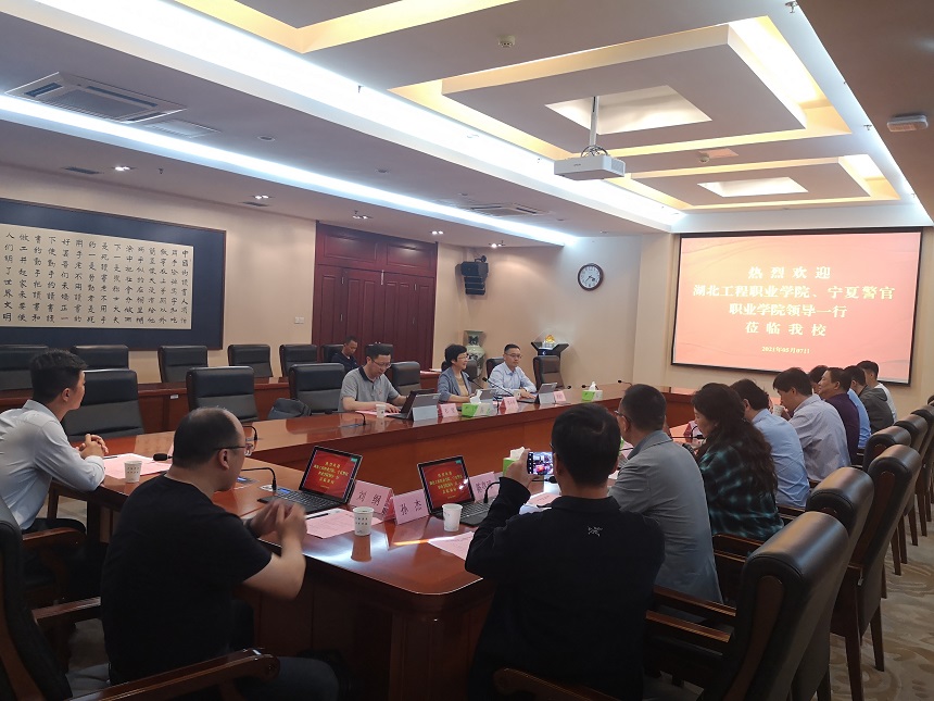 5月7日下午,湖北工程职业学院副院长陈彪彪、宁夏警官职业学院信息中心主任杨建平一行来华体会官方版网站登录入口考察调研智慧校园与校园网络建设。党委常委、副校长苏小冬,以及校长办公室、信息化建设与管理处等部门负责同志在行政楼辅楼一楼会议室接待了来宾。