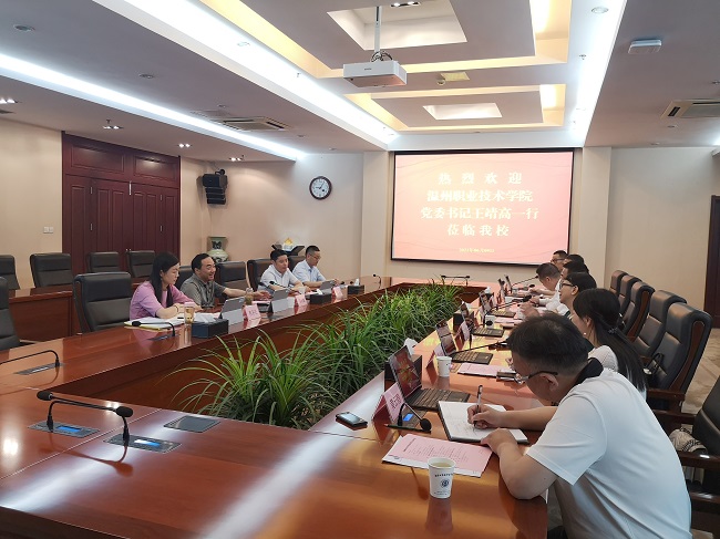 6月10日上午,温州职业技术学院党委书记王靖高一行来华体会官方版网站登录入口考察调研。党委书记吴学敏,以及党委办公室、校长办公室、教务处(教师发展中心)等部门负责同志在行政楼辅楼一楼会议室接待了来宾。