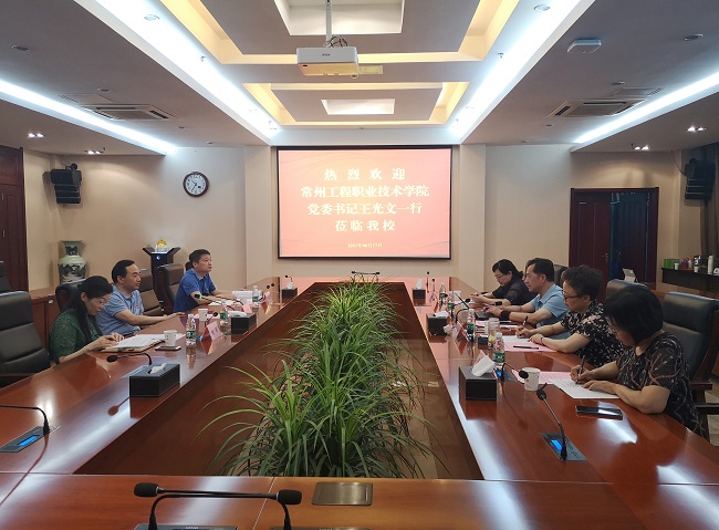 6月17日上午,常州工程职业技术学院党委书记王光文一行来华体会官方版网站登录入口考察调研。党委书记吴学敏、党委常委、党委组织部、统战部部长高宏彦,以及党委教师工作部、人事处等部门负责同志在行政楼辅楼一楼会议室接待了来宾。
