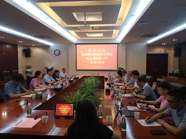 7月20日下午,成都航空职业技术学院校长刘建超一行来华体会官方版网站登录入口考察调研。党委副书记、校长谢永华,以及校长办公室、党委教师工作部、人事处、发展规划处、教务处等部门负责同志在行政楼辅楼一楼会议室接待了来宾。