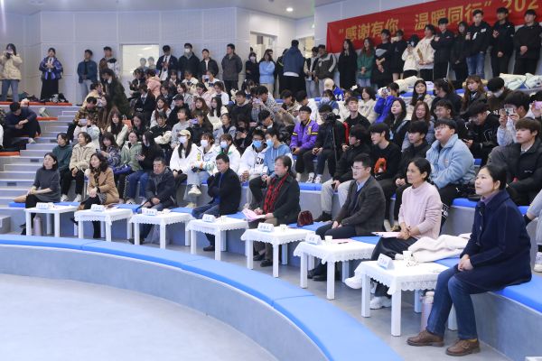 12月10日晚18:00,手语操大赛在双创大楼沉浸式剧场举行。比赛邀请了南京师范大学学工处副处长、仙林大学城心理健康教育研究中心王惠等共7位校内外专家评委,各学院心理辅导员、心理中心专兼职咨询师也来到比赛现场为参演同学们加油鼓劲。各学院参赛团队成员与观众同学们共300余人济济一堂,共同传递关注心理健康、积极乐观生活的健康心态。