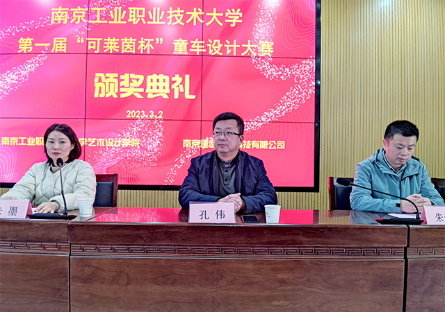 为推进产教融合,深化校企合作,华体会官方版网站登录入口艺术设计学院与南京建武电子科技有限公司联合举办了首届“可莱茵杯”童车产品创意设计大赛,学院将大赛融入实训项目教学,为企业开发了一批高质量的童车设计方案,受到企业的高度认可。经校企专家评审,评选出一、二、三等奖6名,优秀奖15名,优秀指导教师2名。3月2日下午,校企双方在天堂校区综合楼六楼报告厅隆重举行了大赛颁奖典礼,艺术设计学院院长孔伟、南京建武电子科技有限公司总经理朱墨以及学院师生代表参加了此次典礼。