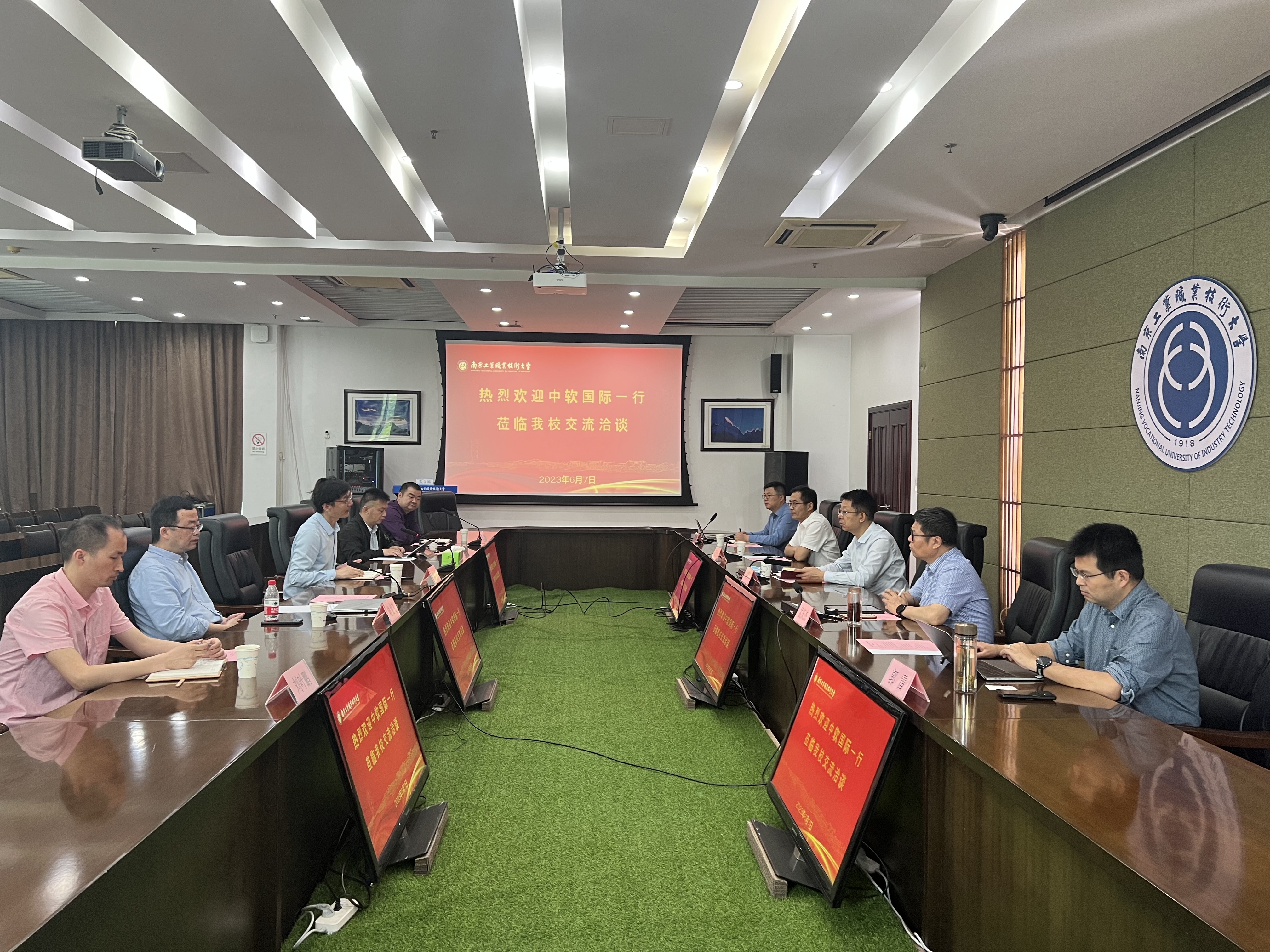 6月7日上午,中软国际教育科技集团高级副总裁姜军一行来华体会官方版网站登录入口交流洽谈。华体会官方版网站登录入口党委常委、副校长孙雁飞,科技处、发展合作处及计算机与软件学院相关负责人热情接待,双方在行政楼辅楼二楼会议室举行座谈。