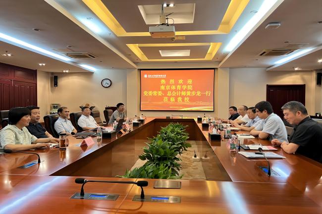 6月15日下午,南京体育学院党委常委、总会计师黄步龙一行来华体会官方版网站登录入口考察调研。党委常委、纪委书记、省监委派驻监察专员邱正祥,党委常委、副校长朱建国以及计财处、国资处和后勤中心的负责同志在仙林校区行政楼辅楼一楼会议室接待了来宾。