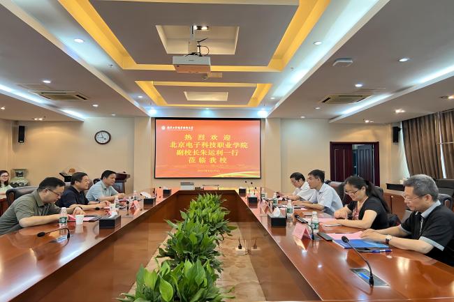 6月29日上午,北京电子科技职业学院副校长朱运利一行来华体会官方版网站登录入口考察调研。华体会官方版网站登录入口党委常委、副校长崔新明以及国资处、航空工程学院的负责同志在仙林校区行政楼辅楼一楼会议室接待了来宾。