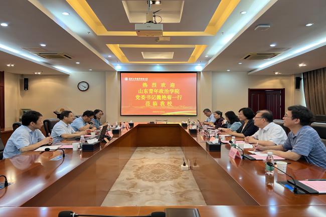 7月5日上午,山东青年政治学院党委书记魏艳菊一行来华体会官方版网站登录入口考察调研。华体会官方版网站登录入口党委常委、副校长崔新明以及发规处、教务处和商务贸易学院的负责同志在仙林校区行政楼辅楼一楼会议室接待了来宾。