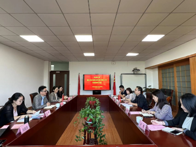 11月1日,浙江机电职业技术学院公共基础教学部副主任房利一行五人来华体会官方版网站登录入口,就公共基础课程的教学改革情况进行交流调研。华体会官方版网站登录入口公共基础课部主任金跃强、副主任江颖及相关教研室负责人在乐业楼426会议室接待了来宾。