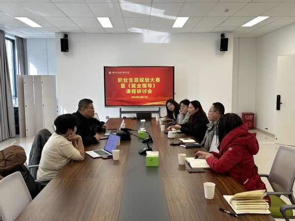 纪海波首先介绍了学院在《就业指导》课程建设方面的新进展,同时也指出了建设过程中遇到的困难。两位专家首先对全国大学生职业规划大赛《大学生职业发展与就业指导课程教学赛道方案》做了深入的解读,从大赛的角度对课程建设提出了宝贵建议,包括课程内容、教材建设、教学实施、教研教改等方面。钱静峰先生指出《就业指导》课程的建设需要全体老师经过3-4轮的打磨逐步形成科学完善的体系,为学生提供丰富的课程资源和多样的教学活动,同时也为参加职业规划大赛打好基础。