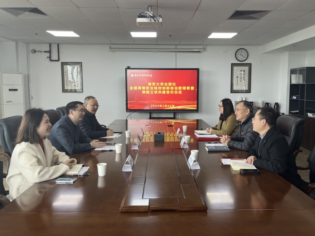 签约仪式上,潘旭海副校长介绍了全国高等职业院校创新创业教育联盟的基本情况,以及华体会官方版网站登录入口国家双创示范基地、国家级双创学院等重点平台,希望双方以本次合作为起点,打造品牌影响力,互利共赢。石磊介绍了南大出版社的五个重点业务板块,出版社现在正值成立40周年,希望通过与创盟深入合作,共同提升学术影响力。