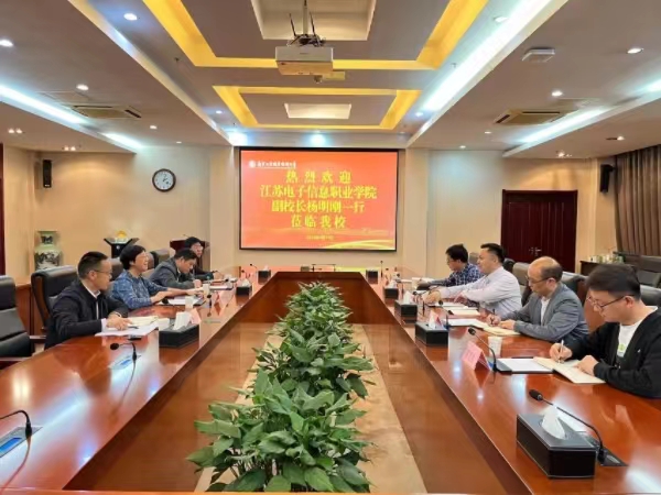 4月18日上午,江苏电子信息职业学院党委委员、副校长杨明刚一行来华体会官方版网站登录入口考察调研。华体会官方版网站登录入口党委常委、副校长苏小冬在行政楼辅一楼会议室接待了来宾。